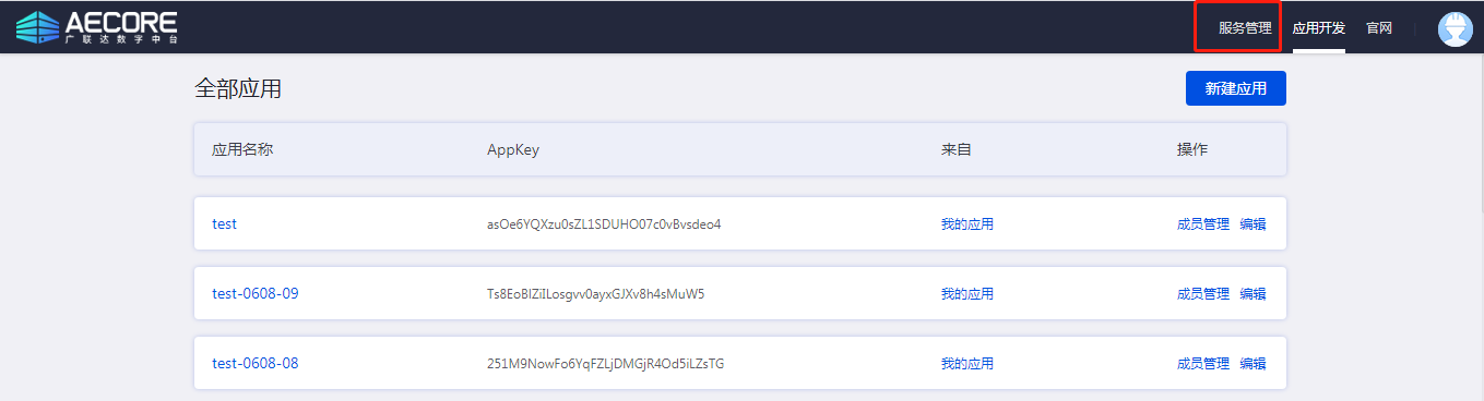 AppKey来源: 选择手动填写appkey对应的用户中心的环境,注意:appkey与环境对应错误会导致验权失败。AECORE默认生成的appkey对应用户中心环境唯一,不可修改;