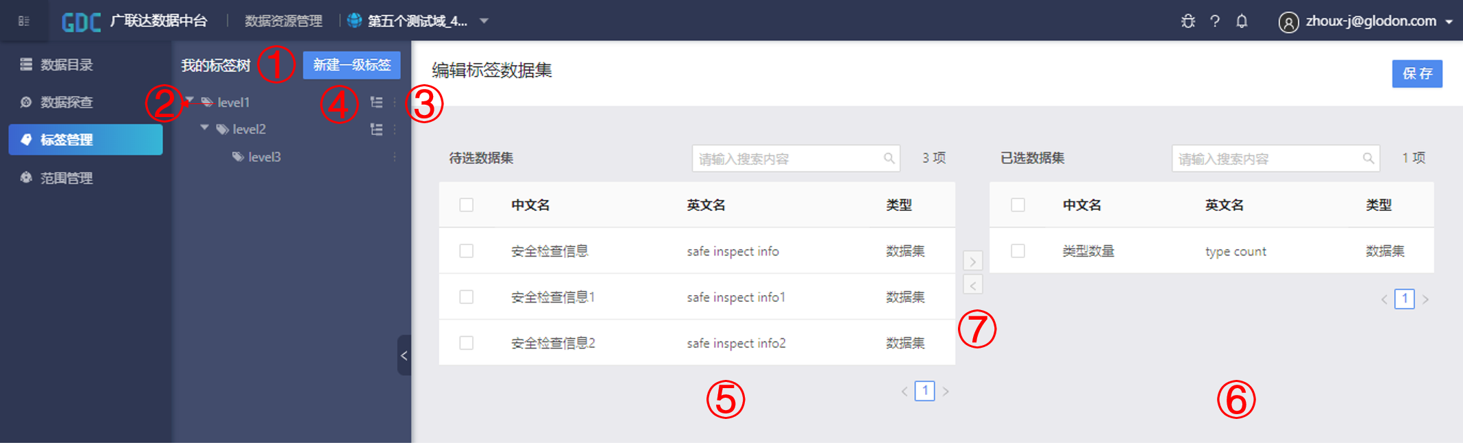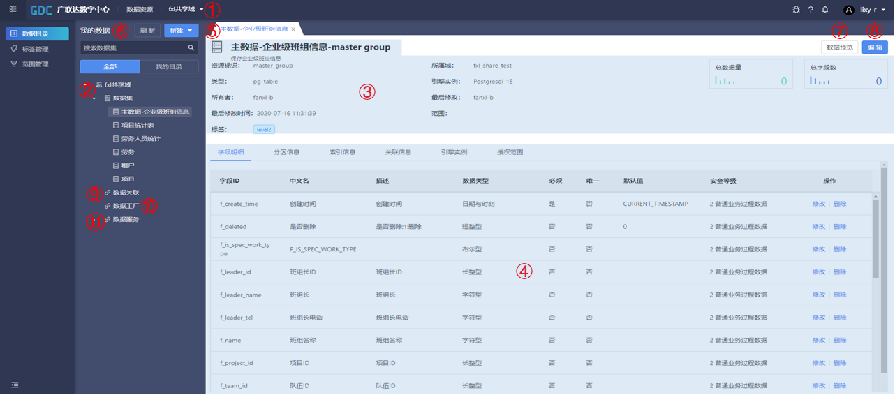 | ⑦ | 全域资源 | 是否开启全域资源,即可对全域内数据资源的权限进行申请 |