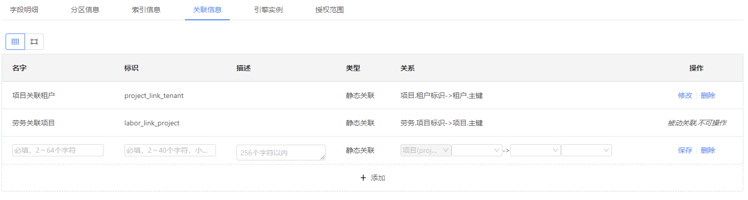 其中其他信息包括字段信息、分区信息、索引信息、关联信息、引擎实例和范围授权,在本节中,将对这几类信息进行详细介绍。