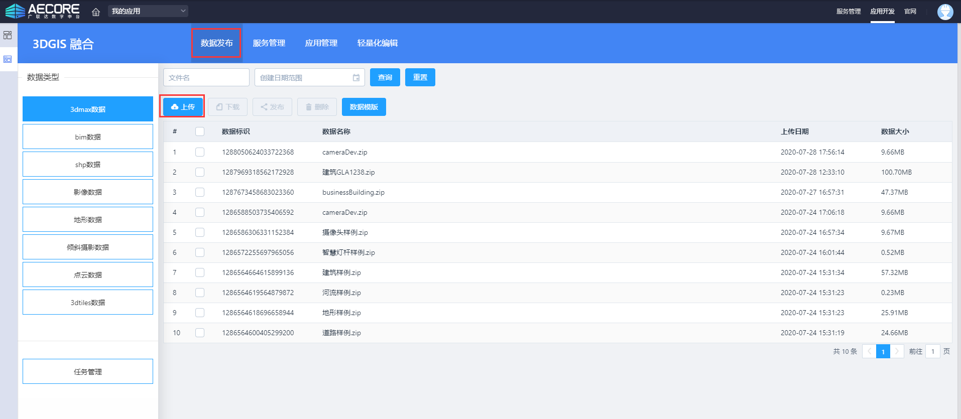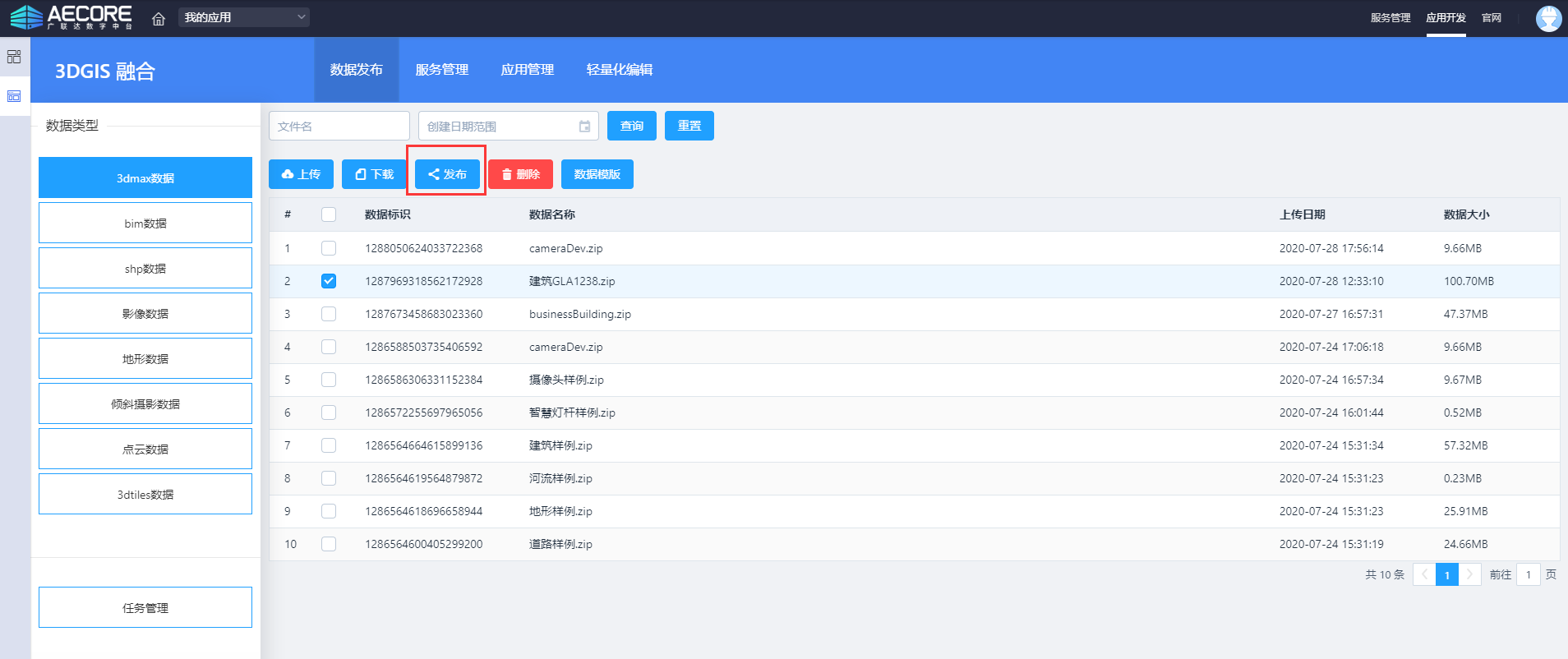 - 2/3D数据自动化接入:具备异构空间数据的自动化发布及管理能力,支持40多种模型数据,以及SHP、DWG等矢量数据,地形影像、激光点云、倾斜摄影;
